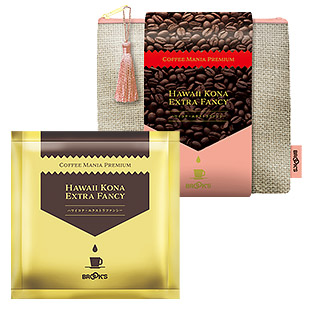 Evolving Drip Coffee "The Ultimate Drop" Contents : 1 bag (15g) Hawaii Kona Extra Fancy" is a mild-bodied, harmonious product with a fruity, refreshing citrusy acidity and sweetness. Large beans full of flavor are slowly roasted over an open flame to bring out the individuality of the beans. The package is also carefully designed, and comes in a special pouch that resembles a jute bag filled with coffee beans. This is a special cup for you to enjoy at a premium.