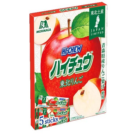 青森県産りんご果汁を使用した東北限定ハイチュウです。爽やかな甘さが口に広がります。