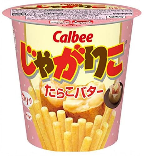 おなじみの「じゃがりこ」シリーズ「たらこバター味」が待望の定番商品に♪たらこの粒を練り込み、見た目も楽しいじゃがりこを演出しています。独自の製法で"はじめカリッとあとからサクサク"の心地よい食感が楽しめます。たらこの旨みをバターが引き立てた、風味豊かな味わいになっています。原材料・成分じゃがいも(国産)、植物油、ミルクパウダー、粉末植物油脂、デキストリン、たんぱく加水分解物(大豆を含む)、ぶどう糖、食塩、たらこ、でん粉、乳糖、砂糖、まだらこ、クリーミングパウダー、バター、牛乳、調味料(アミノ酸等)、香料、乳化剤、着色料(カロチノイド、紅麹)、甘味料(ステビア、カンゾウ)、酸化防止剤(V.C)原産国:日本 ●開封後はお早めにお召しあがりください。※写真はイメージです。直射日光の当たる所、高温多湿の所での保存はさけてください。「じゃがりこ」は、かたさが特徴のお菓子です。口の中を傷めたり、のどにつまらせないよう、少しずつ、よくかんでお召しあがりください。特に、小さなお子様はご注意ください。製品中に黒い粒が入っていることがありますが、これはじゃがいもの皮です。