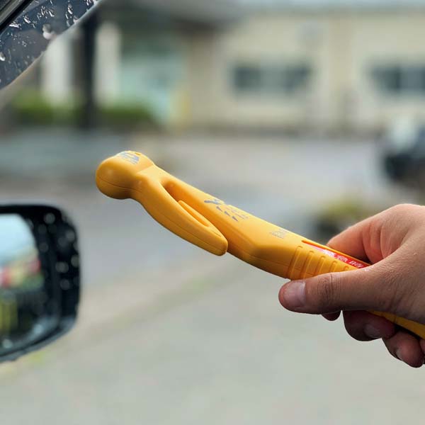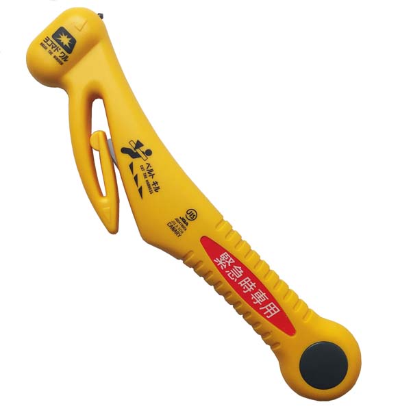 Product certified under Japan Industrial Standard (JIS) This is the first JIS-certified product in Japan as an emergency escape support tool for automobiles with basic functions. It is an emergency escape support tool for automobiles used for quick escape and rescue from the car in case of car accident, submersion, disaster, etc.