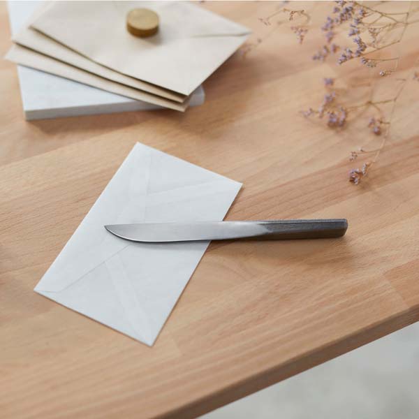 経年変化が楽しめる高級ペーパーナイフ。刃物の町岐阜県関市の職人が鍛造で仕上げたペーパーナイフ鉄素材の特徴である錆びが、無機質な鉄にニュアンスを与え表情を変化していく風合いが魅力です。錆びによって変化していくペーパーナイフは世界に一つだけの模様となり世界に一つだけのペーパーナイフへとなります。