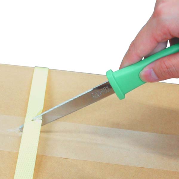 Easy-to-use cardboard saw. It is useful for crafts, packing, opening, and volume reduction. The special serrated blade produces a sharp cut and can cut not only cardboard, but also plastic bands/straps and vinyl for packing without slipping. The double-edged blade can be used from either side. Curved lines can be cut with ease.
