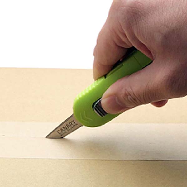 段ボールの開梱・解体作業に最適です。本体裏側のボタンを押せばワンタッチで刃が収納できます。ダンボールの開梱はもちろん、PPバンド、フィルム、送り状剥しなどもできます。異物混入などの安全対策で導入するケースが増えています。