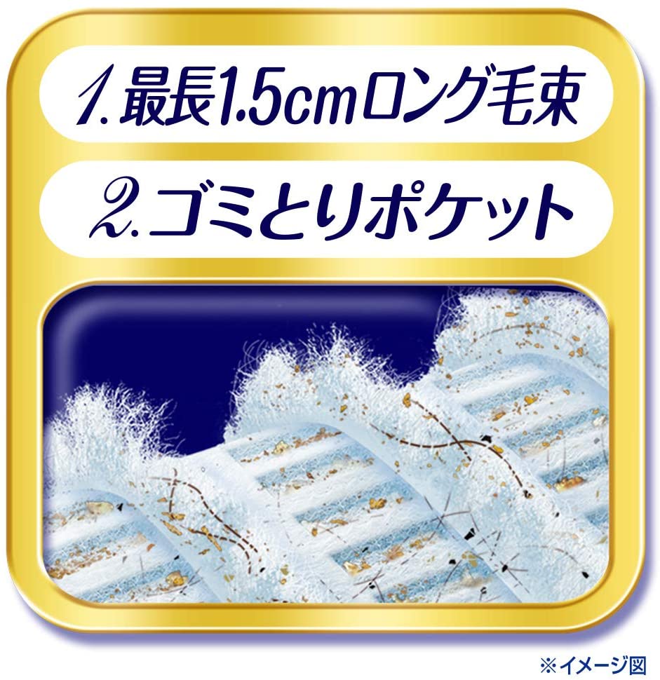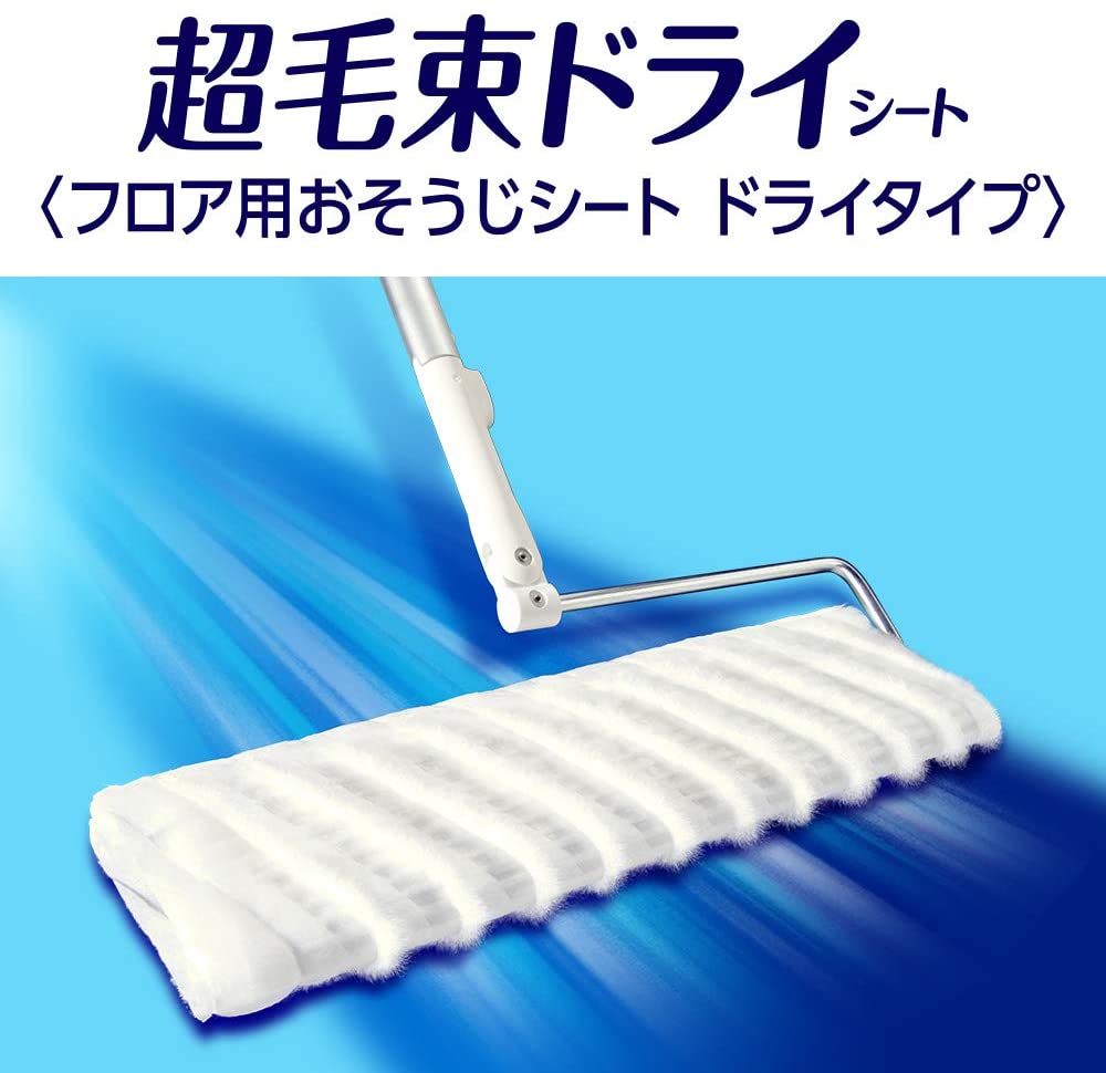 掃除機でしか取れなかった粒状のゴミまで取りきるフロア用ドライシートです。「最長1.5cmからめるファイバー」と「ゴミ取りポケット」がWの機能で、ホコリ・髪の毛はもちろん、「パンくず・砂つぶ」まで、1枚でからめとって離しません。フローリングワイパー。床拭きシート、モップに最適。