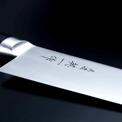 『宝長(ほうちょう)』 美濃 英一作を『宝』のように『長く』使っていただきたいという意味があります。 錆びにくいステンレス系の素材で切れ味と長切れするものです。