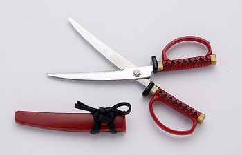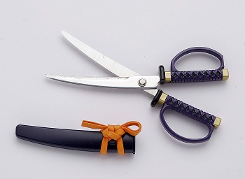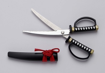 Japanese sword scissors. The curved blade has a "pulling cut" effect for smooth cutting.