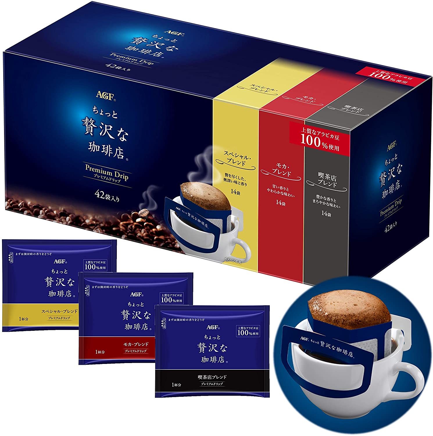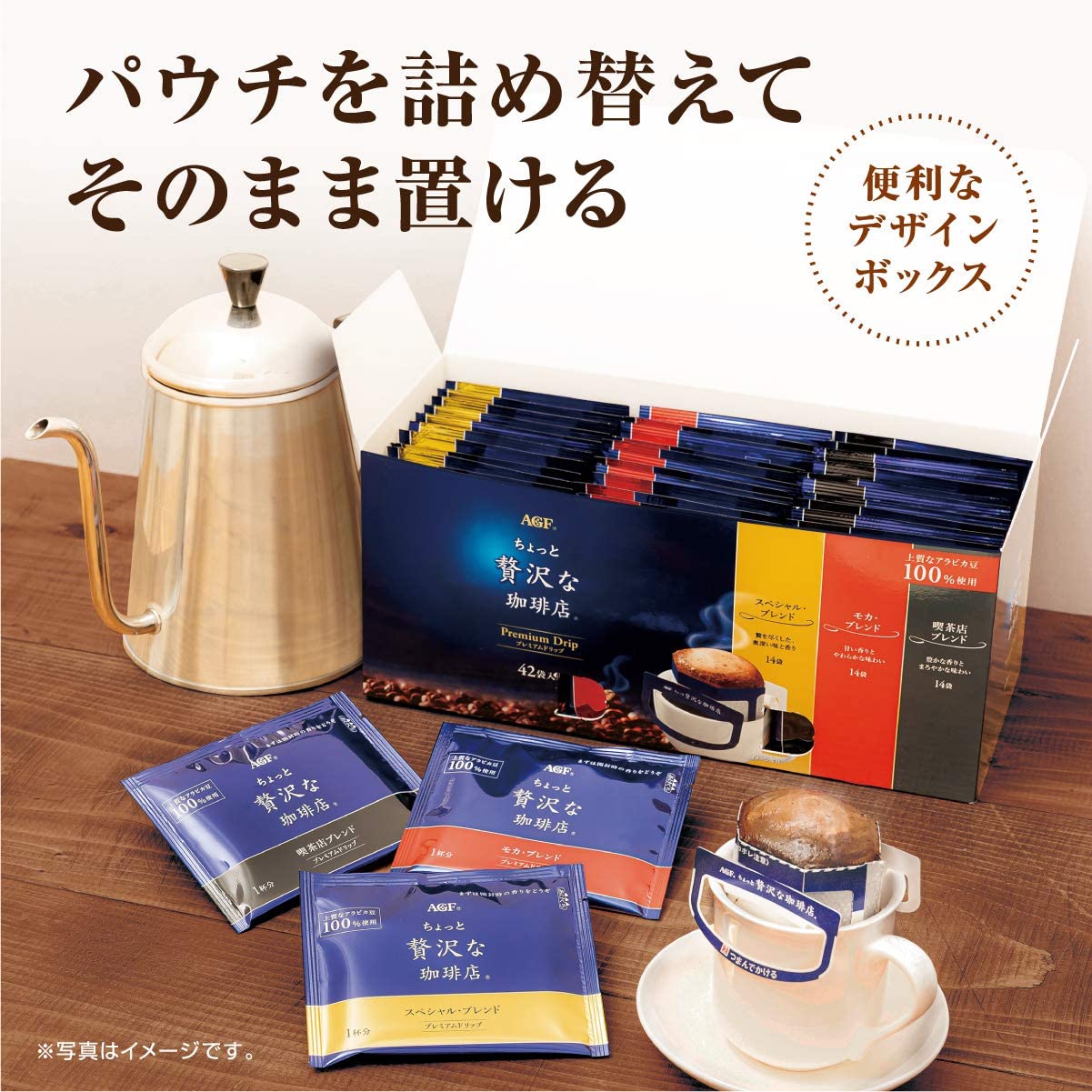 Enjoy adult. The "Slightly Luxurious Coffee Shop" Regular Coffee Premium Drip is made from 100% carefully selected high quality Arabica coffee beans and carefully roasted according to the characteristics of the beans. This drip coffee has an aromatic and clear aftertaste as if it were hand-drip brewed by a coffee shop master.