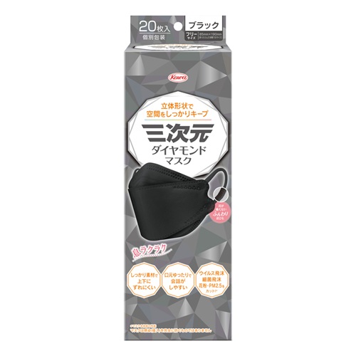 3-D Diamond Mask, Box of 2 x 20 Masks (Black), Mask, Japan Product