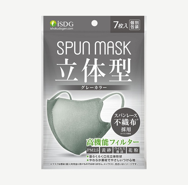 spunmask 3-D, gray color, 7 pieces, mask, color, small face, Japanese product